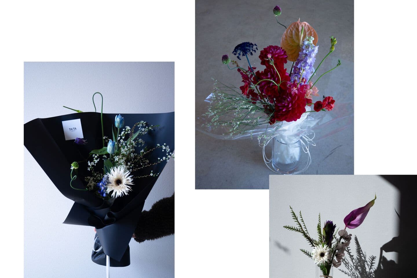 取り入れた自由で遊び心ある花束TA/TA独自の仕上がりになります